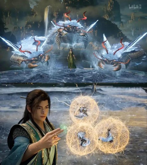 动画效果还是很不错的,采用了类似于时间静止的场景特写,“以静制动、以慢写快”地展现出了韩立不加掩饰的庞大神识(或者说杀意),漂亮。