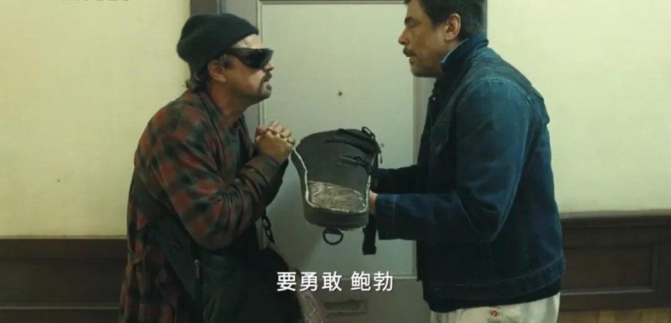在鲍勃还在等转接电话的空挡,“大师”早把一切撤退事宜安排得井井有条,他的学生更是在警察的围追堵截中上蹿下跳、逃出生天。由本尼西奥·德尔·托罗饰演的“从容容游刃有余”的大师和“匆匆忙忙连滚带爬”的鲍勃的鲜明对比,也构成了PTA对无能左派的又一讽刺。